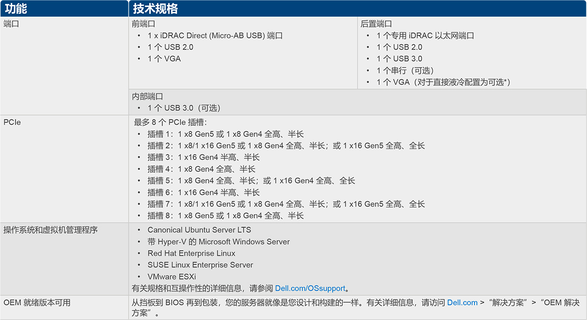 PowerEdge R7625 突破性的性能全新戴尔 PowerEdge R7625 是 2U 双路机架式服务器。这款功能极其强大的服务器专为成为数据中心的主干而设计, 可在空气或直接液冷 (DLC)* 配置中提供充足的性能和灵活、低延迟的存储选项。